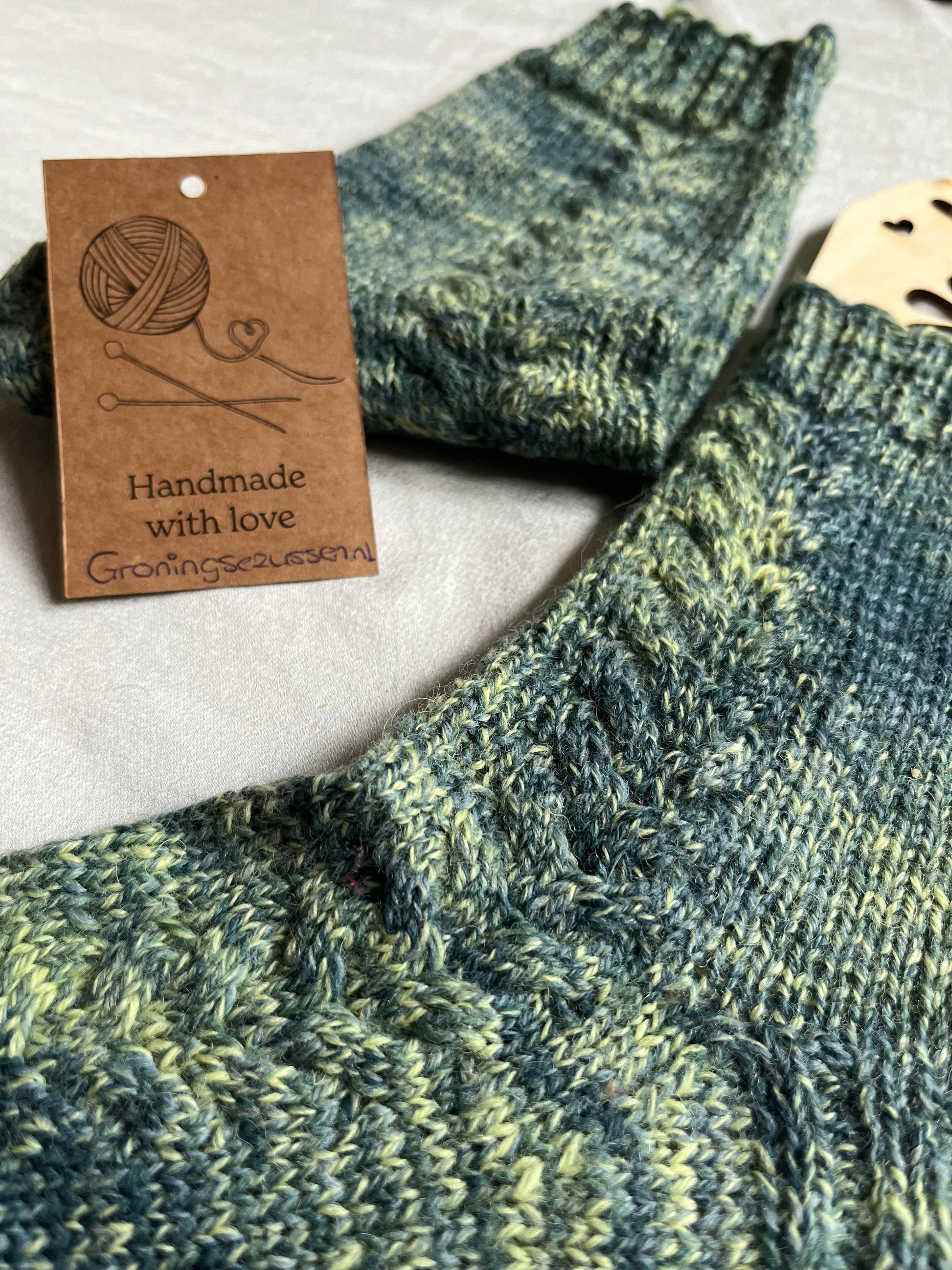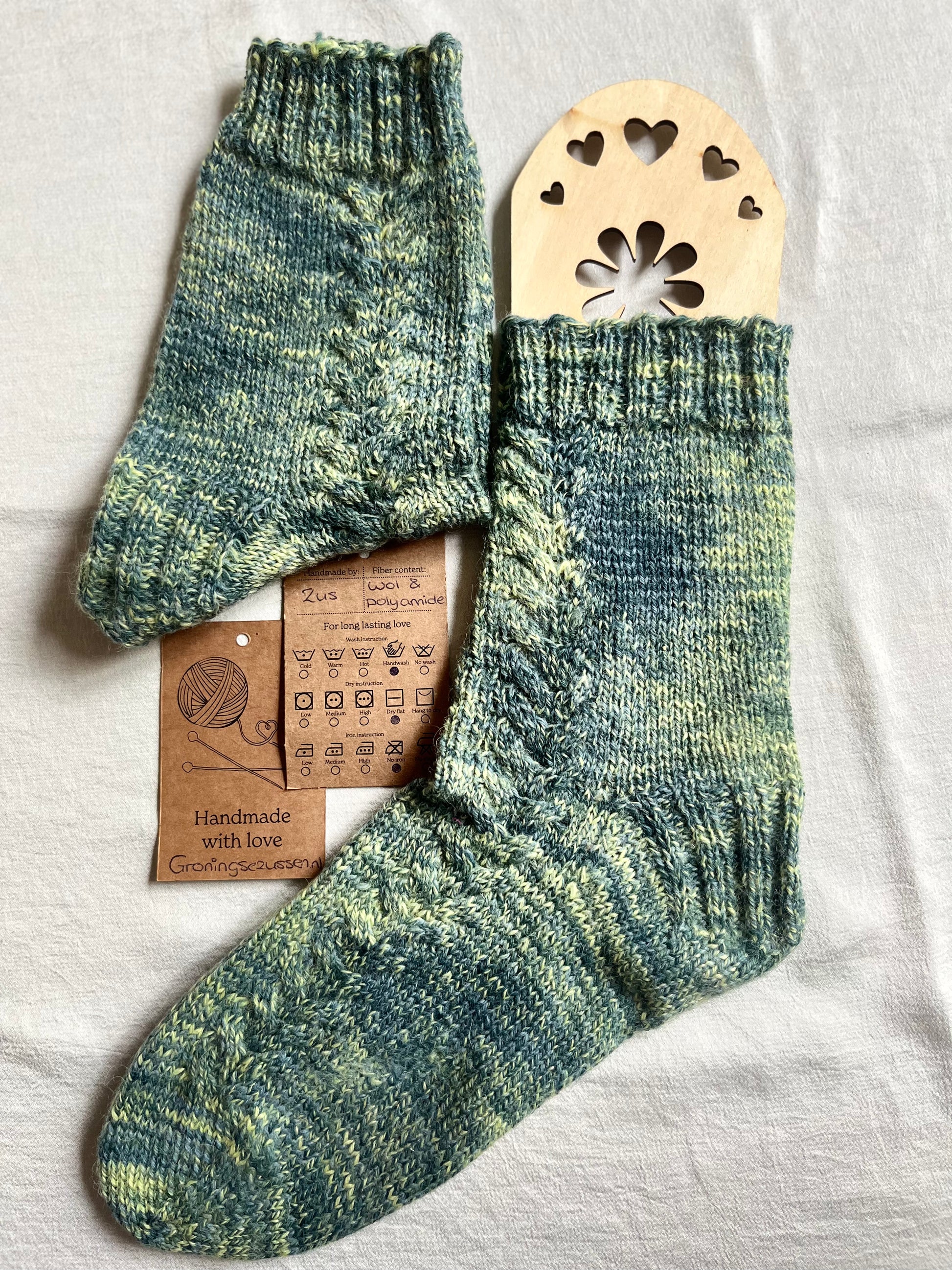 Handgemaakte, unieke sok van zachte wol met een vleugje polyamide voor extra stevigheid en flexibiliteit. Comfortabel, warm en duurzaam.