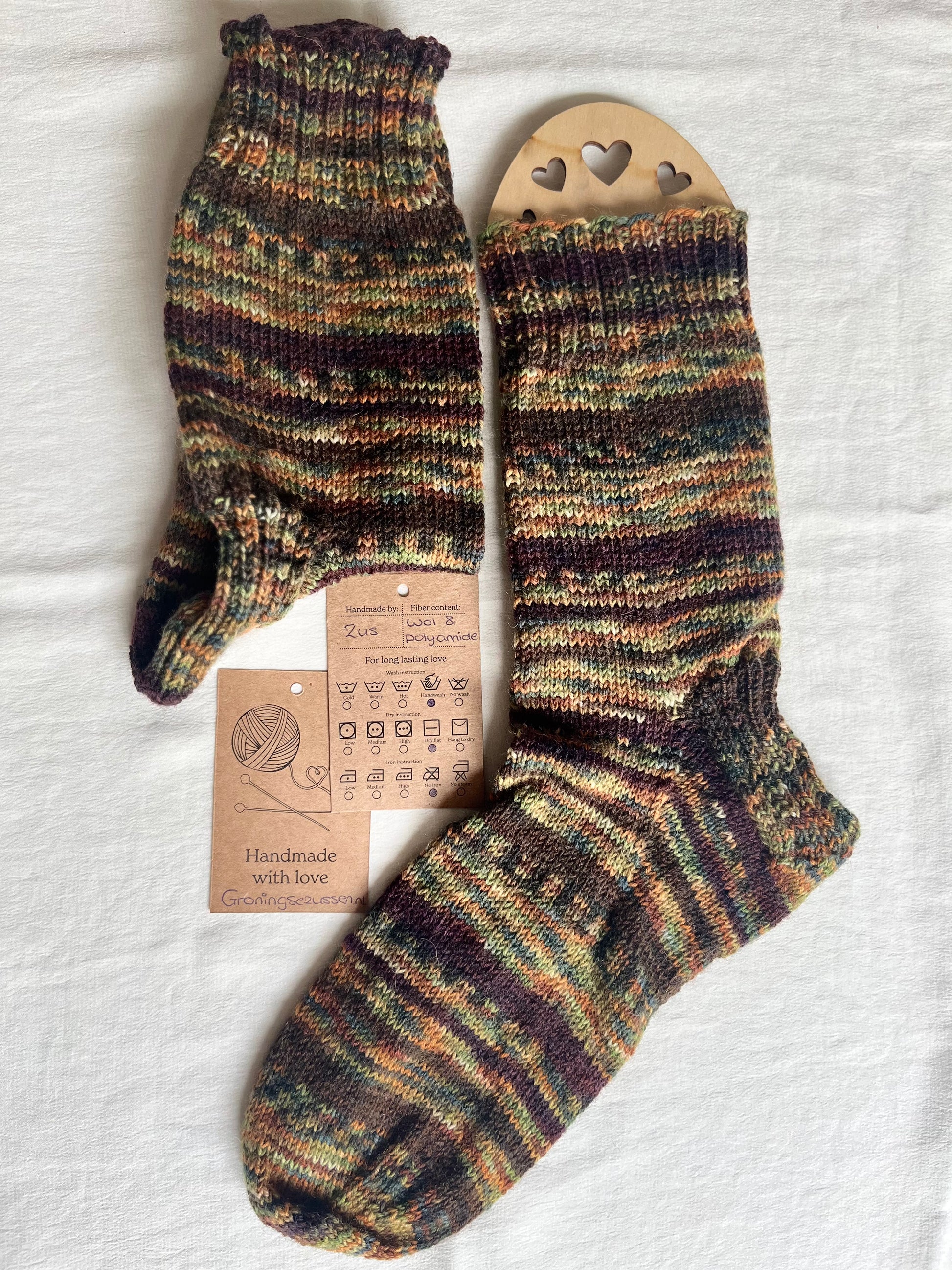 Handgemaakte, unieke sok van zachte wol met een vleugje polyamide voor extra stevigheid en flexibiliteit. Comfortabel, warm en duurzaam.