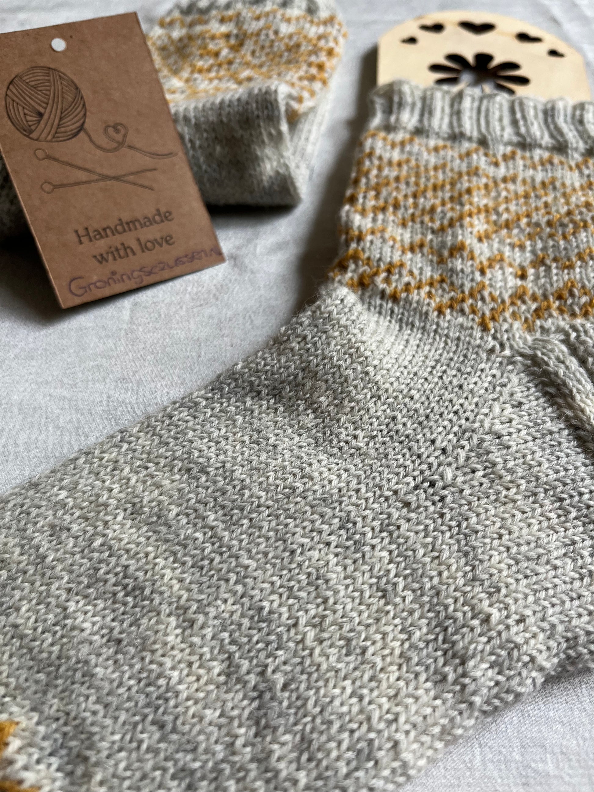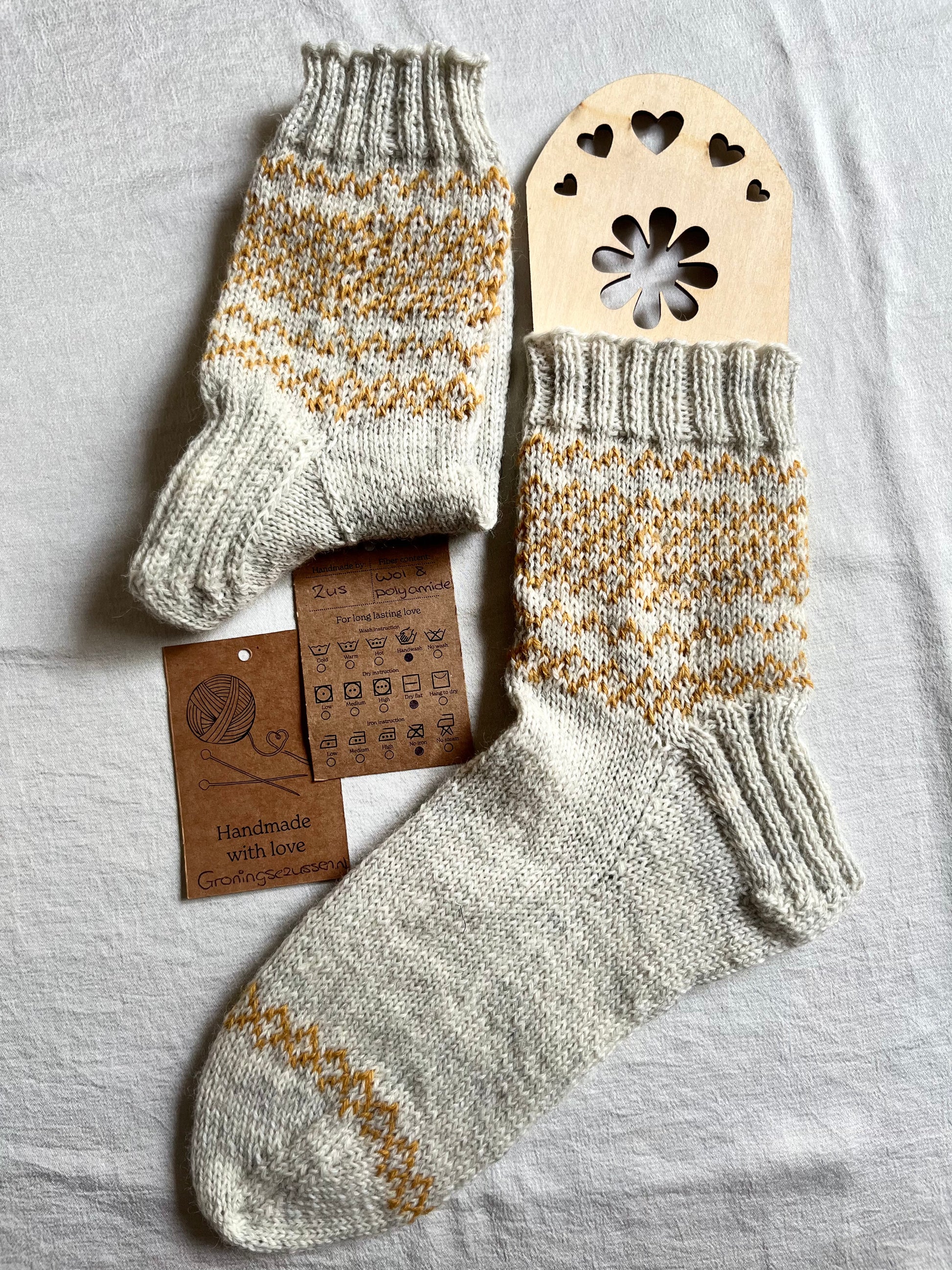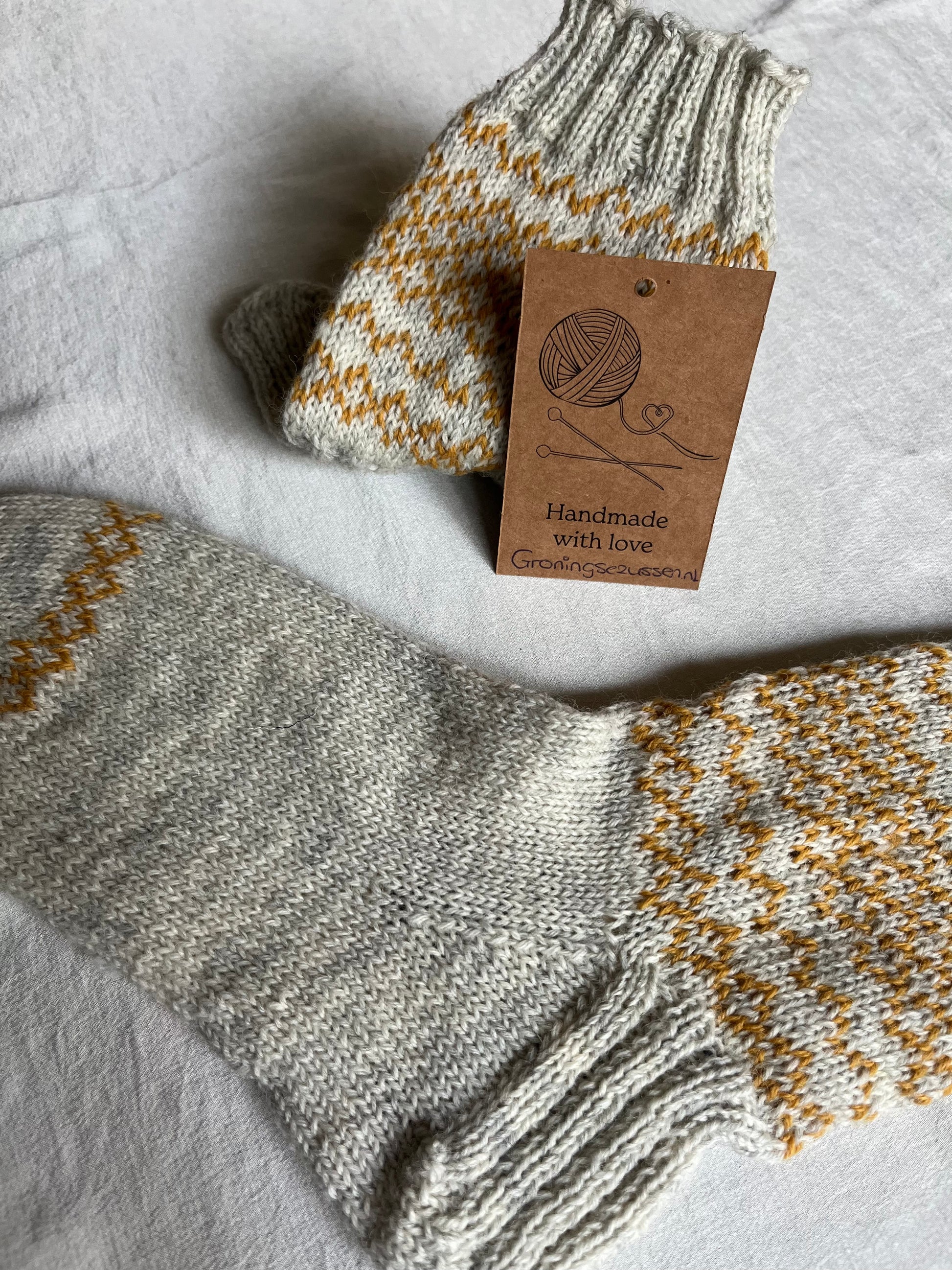 Handgemaakte, unieke sok van zachte wol met een vleugje polyamide voor extra stevigheid en flexibiliteit. Comfortabel, warm en duurzaam.
