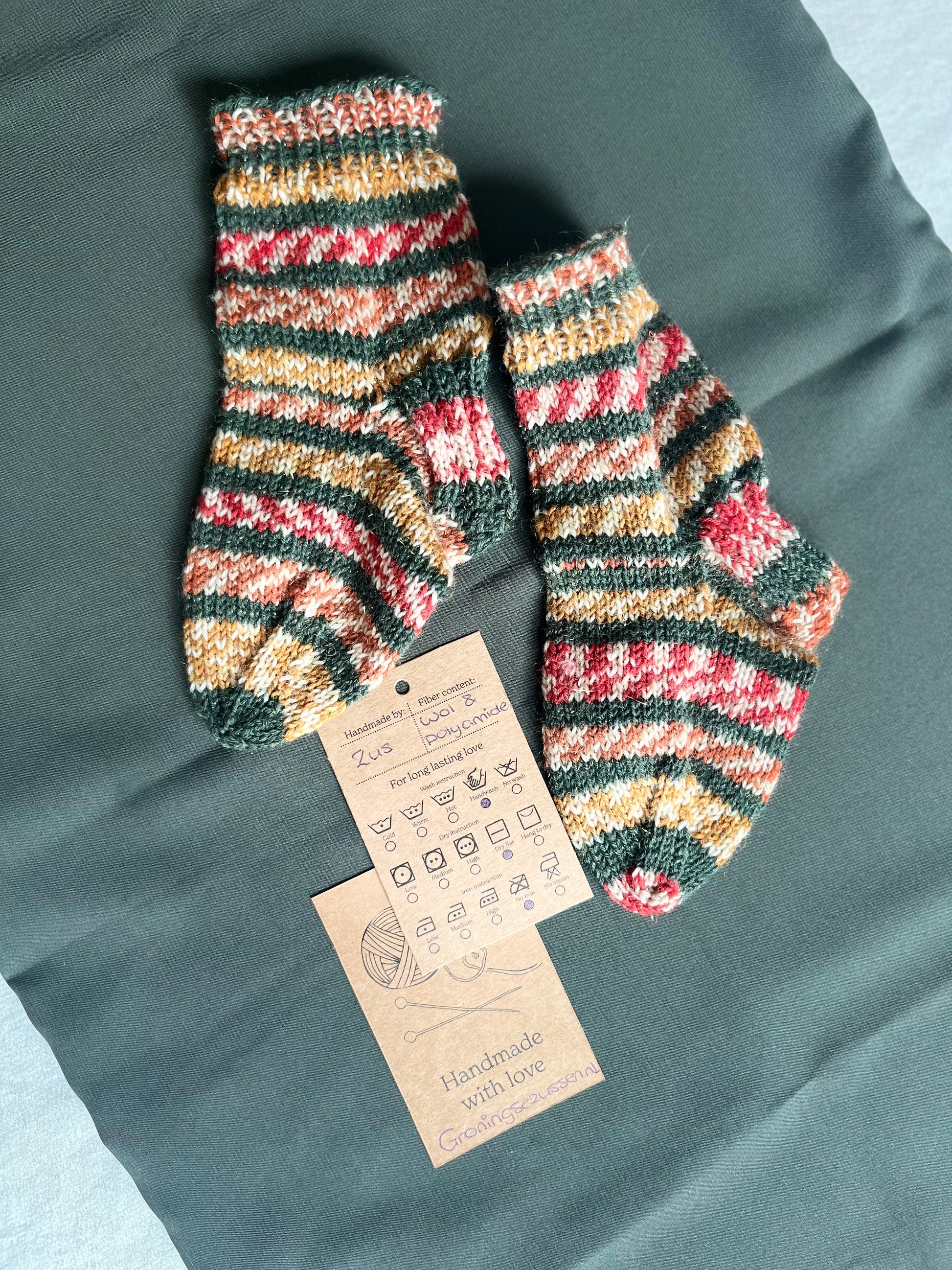 Handgemaakte, unieke sok van zachte wol met een vleugje polyamide voor extra stevigheid en flexibiliteit. Comfortabel, warm en duurzaam.