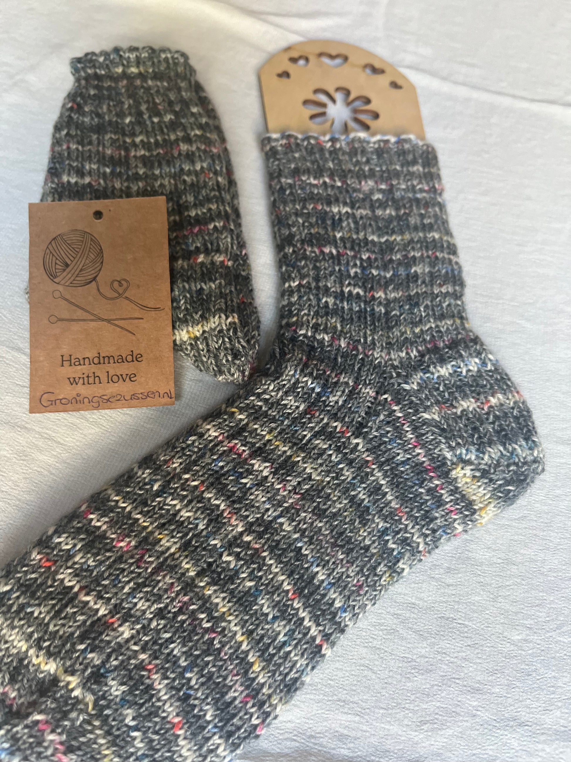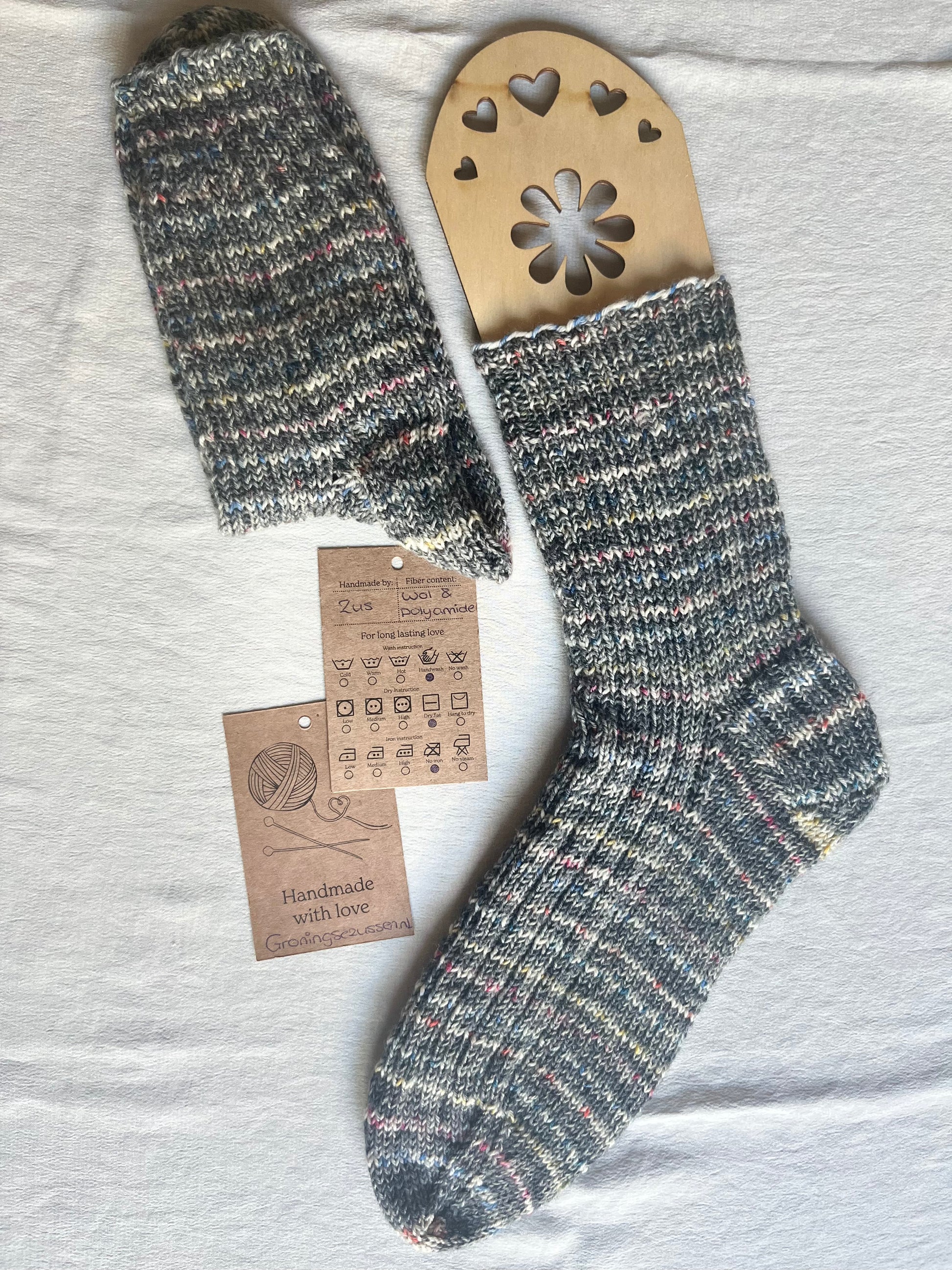 Handgemaakte, unieke sok van zachte wol met een vleugje polyamide voor extra stevigheid en flexibiliteit. Comfortabel, warm en duurzaam.
