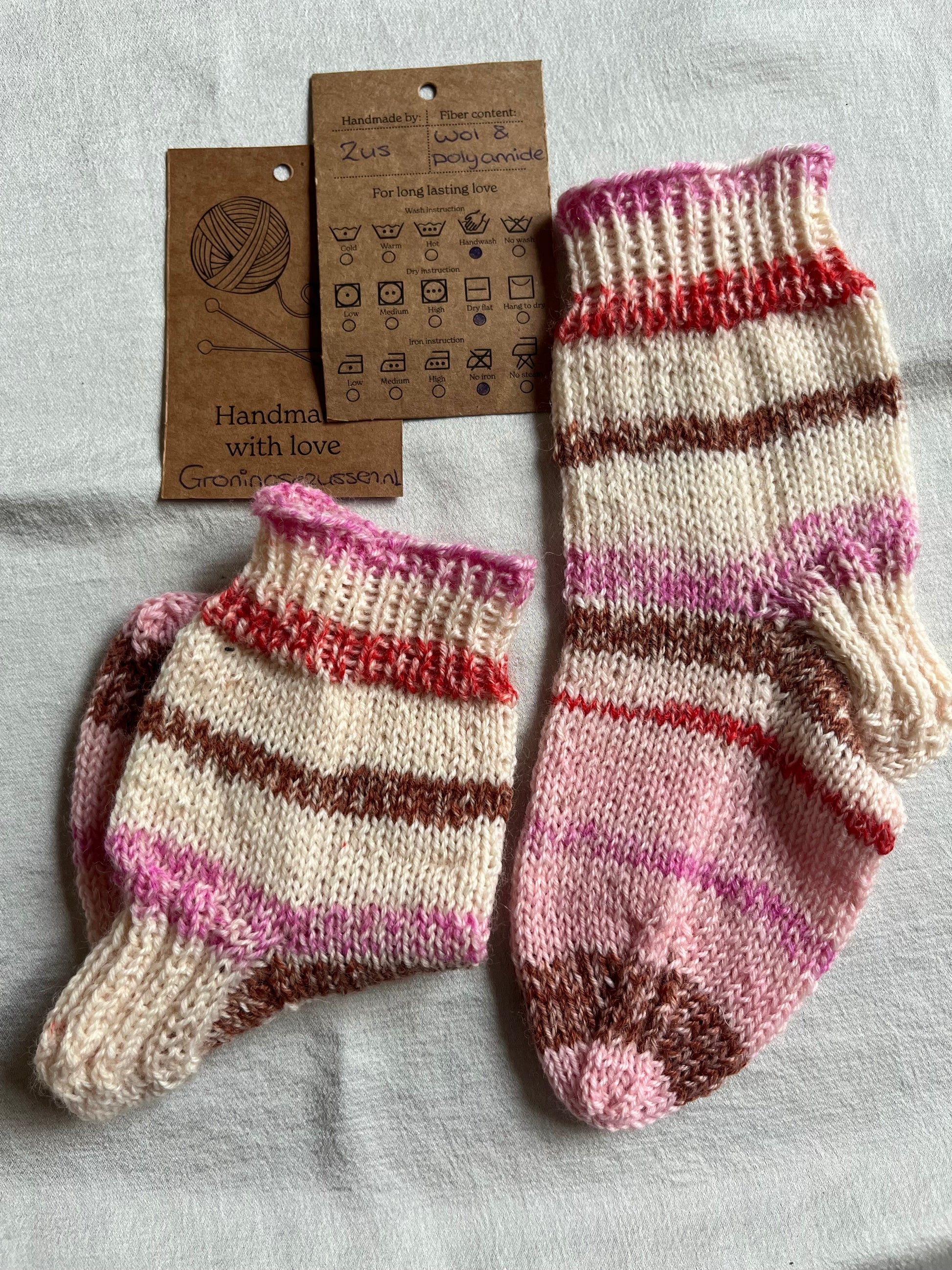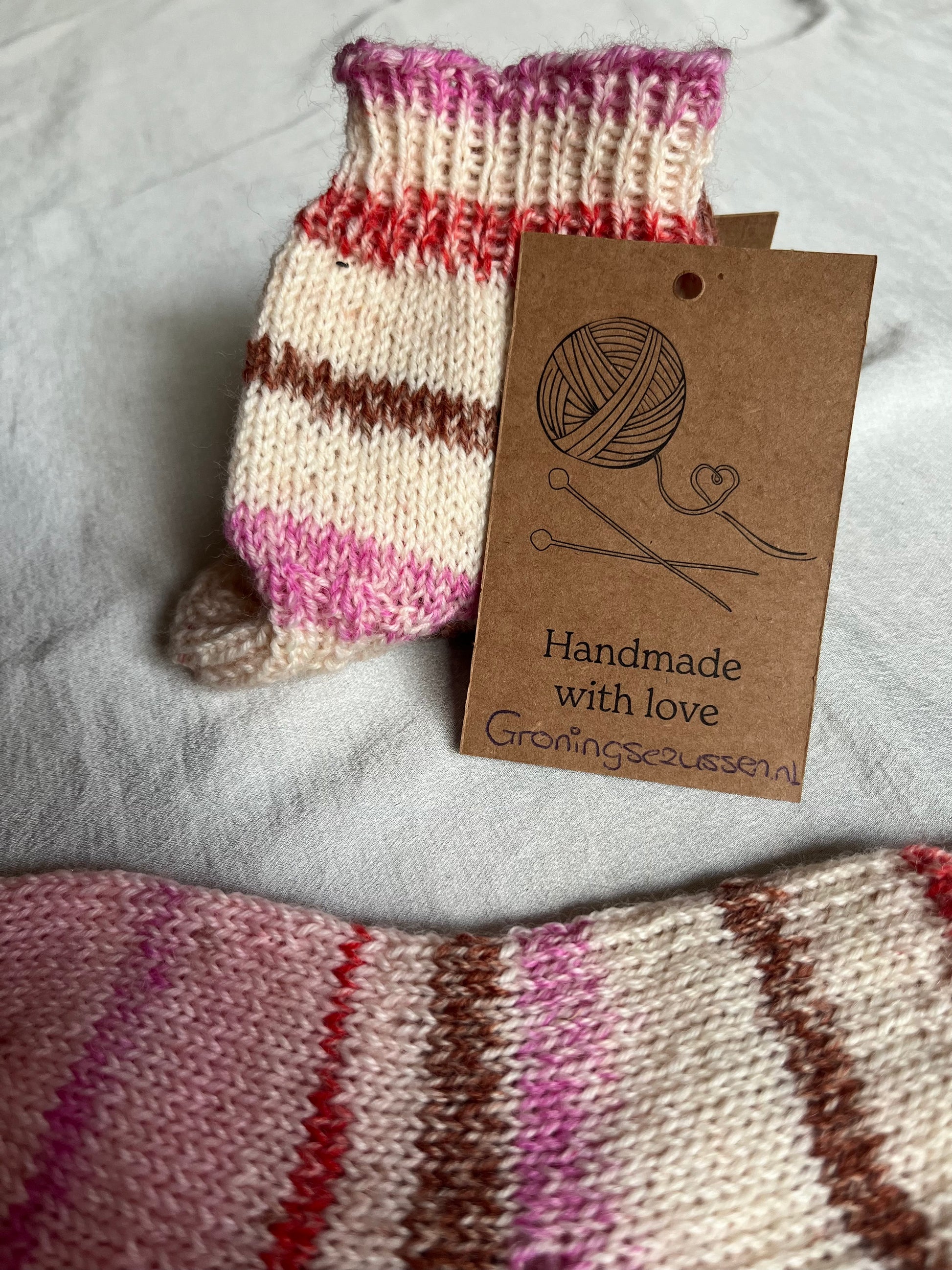 Handgemaakte, unieke sok van zachte wol met een vleugje polyamide voor extra stevigheid en flexibiliteit. Comfortabel, warm en duurzaam.