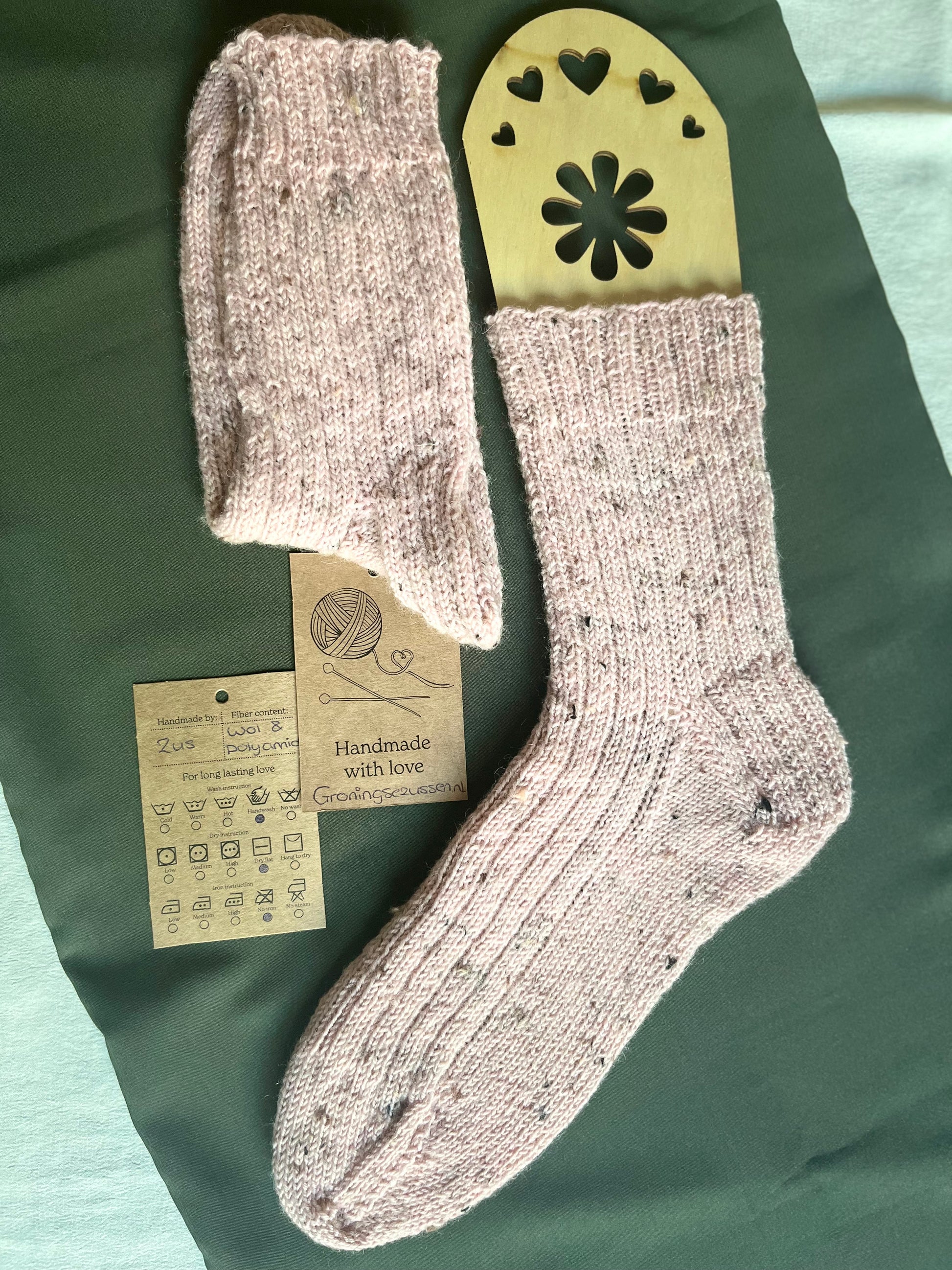 Handgemaakte, unieke sok van zachte wol met een vleugje polyamide voor extra stevigheid en flexibiliteit. Comfortabel, warm en duurzaam.