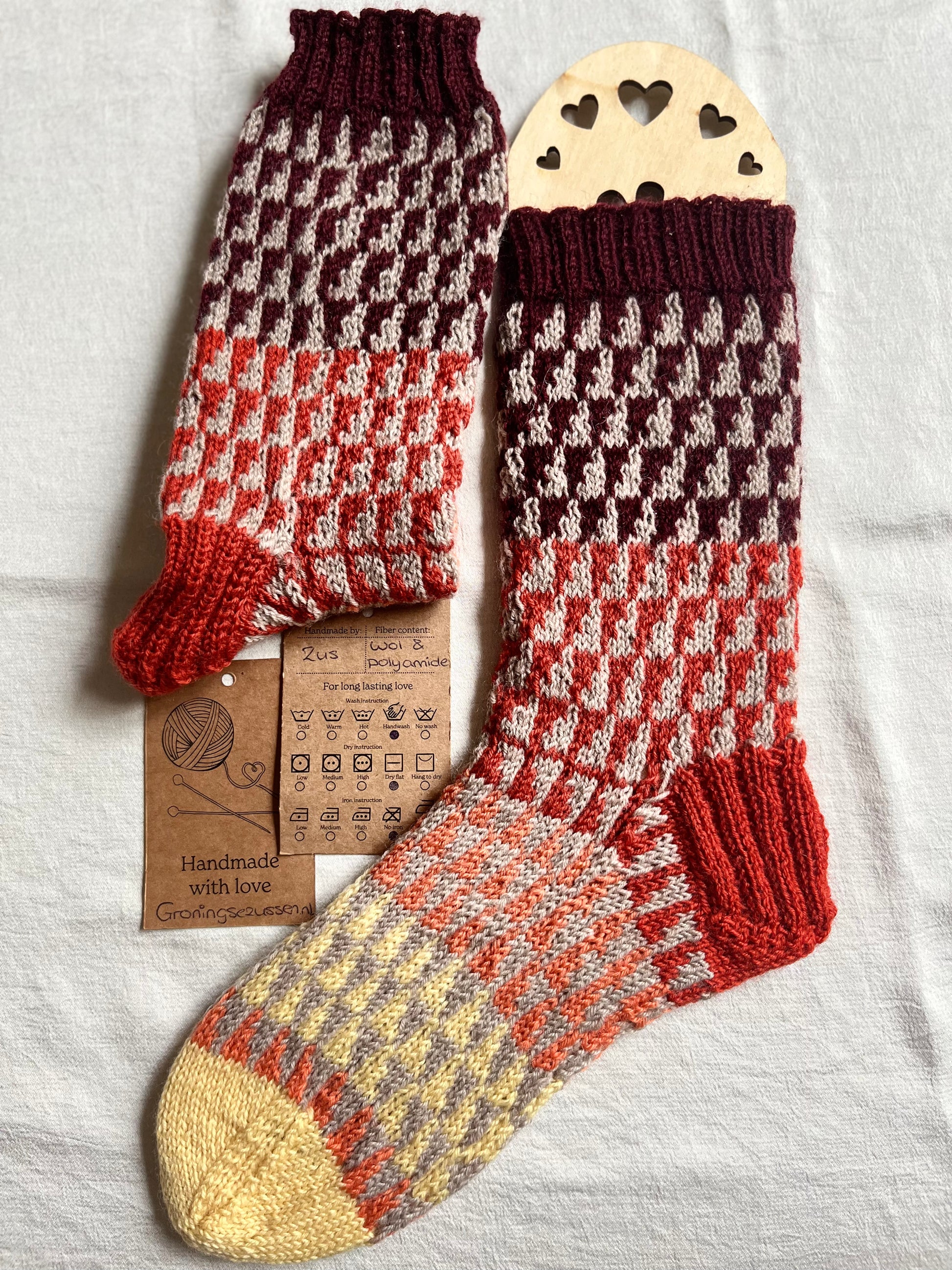Handgemaakte, unieke sok van zachte wol met een vleugje polyamide voor extra stevigheid en flexibiliteit. Comfortabel, warm en duurzaam.