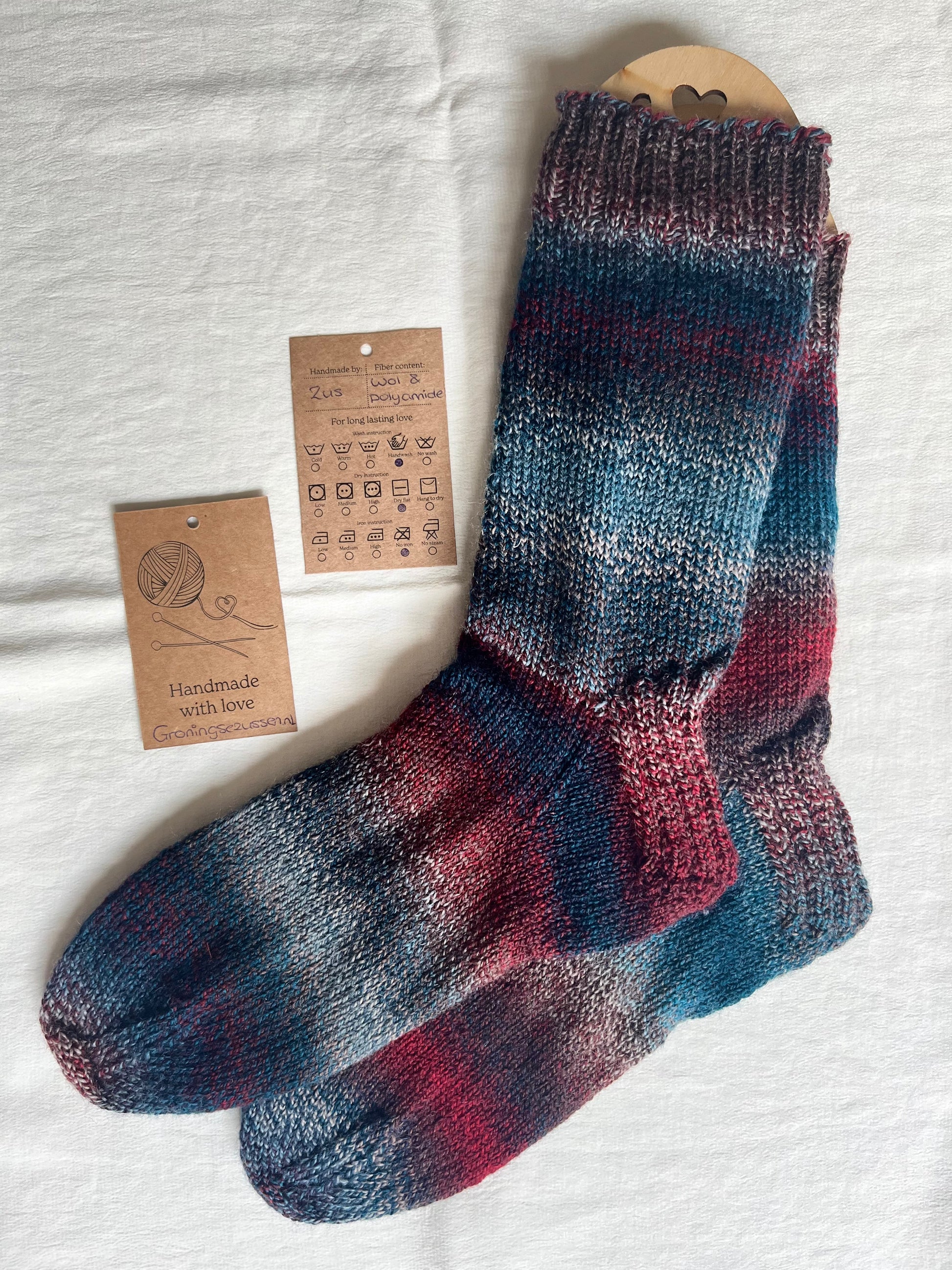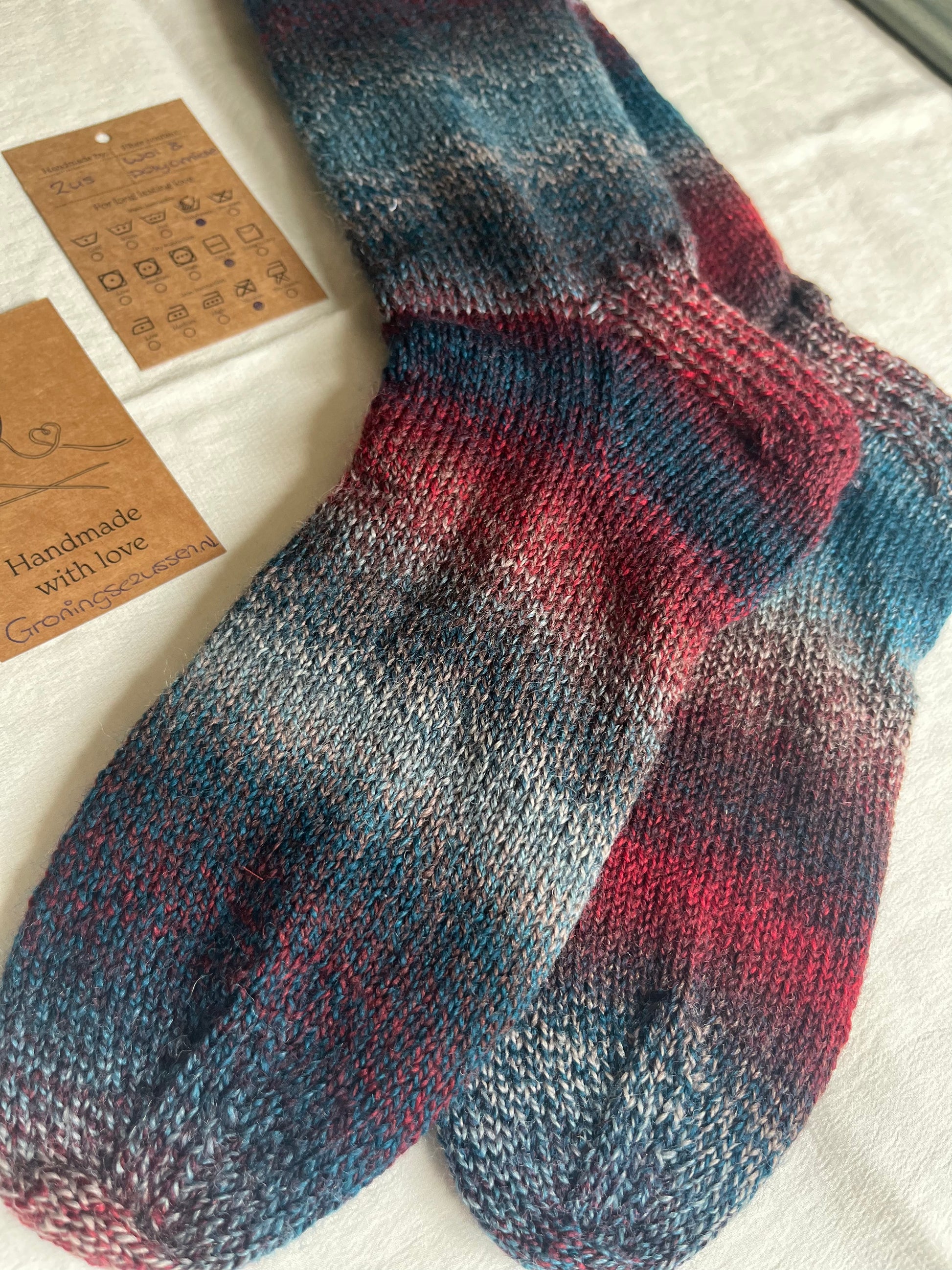 Handgemaakte, unieke sok van zachte wol met een vleugje polyamide voor extra stevigheid en flexibiliteit. Comfortabel, warm en duurzaam.