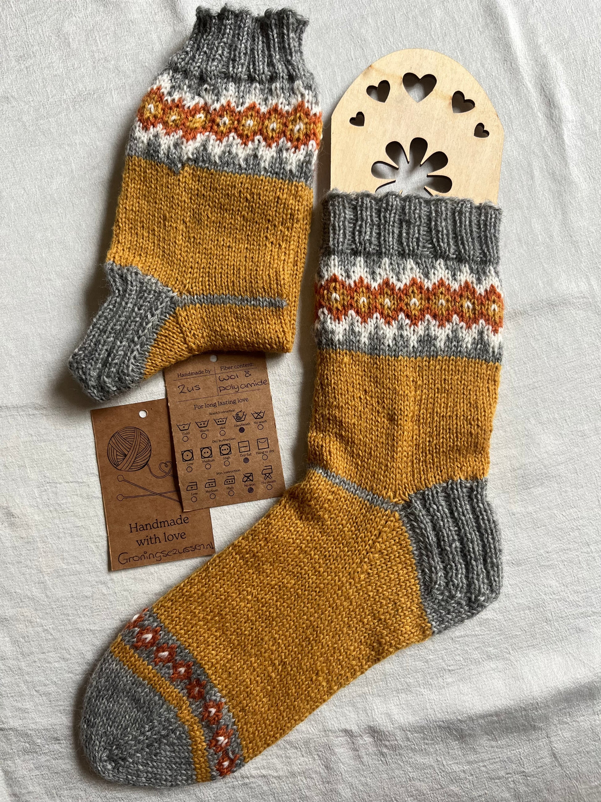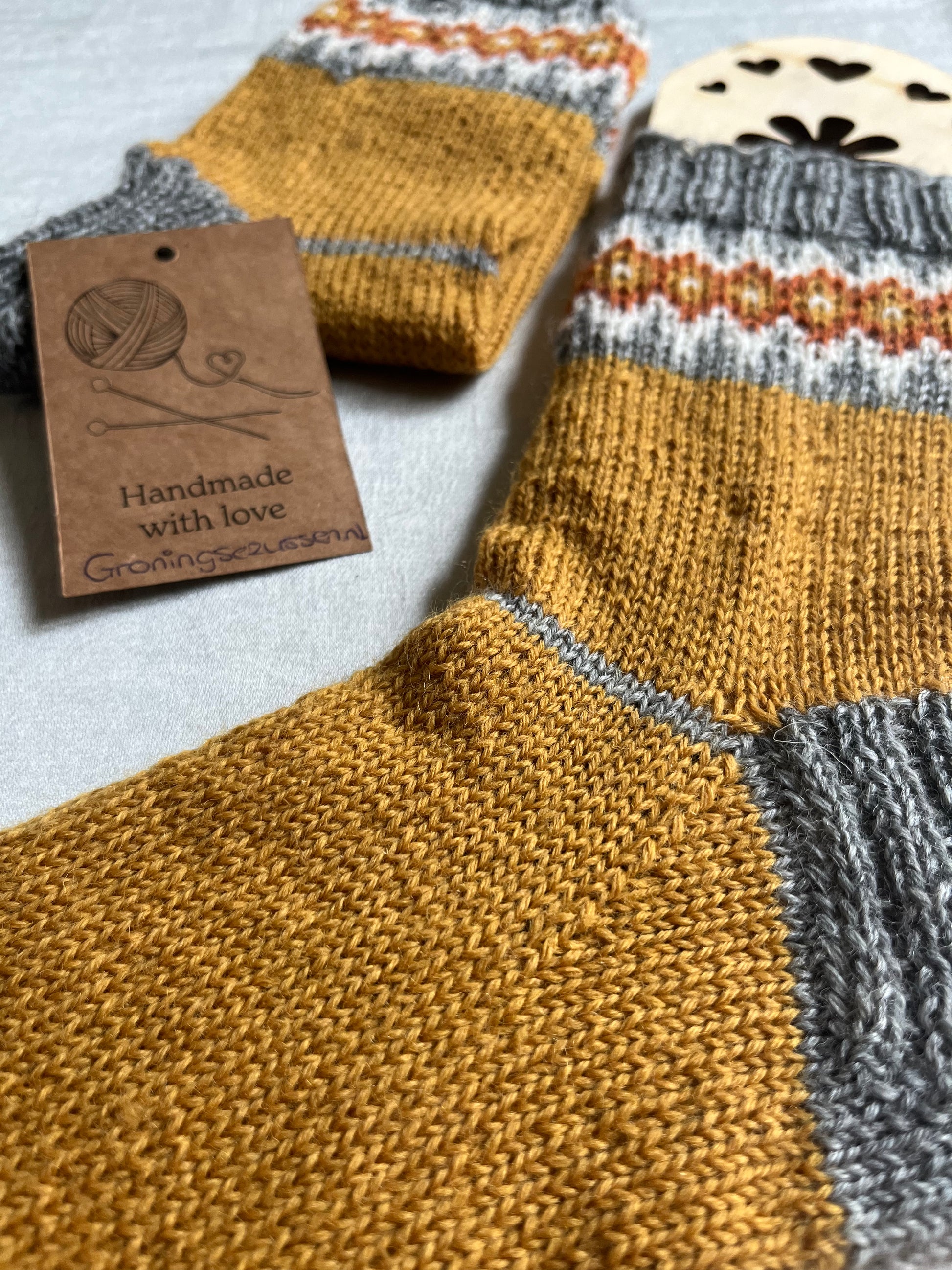 Handgemaakte, unieke sok van zachte wol met een vleugje polyamide voor extra stevigheid en flexibiliteit. Comfortabel, warm en duurzaam.