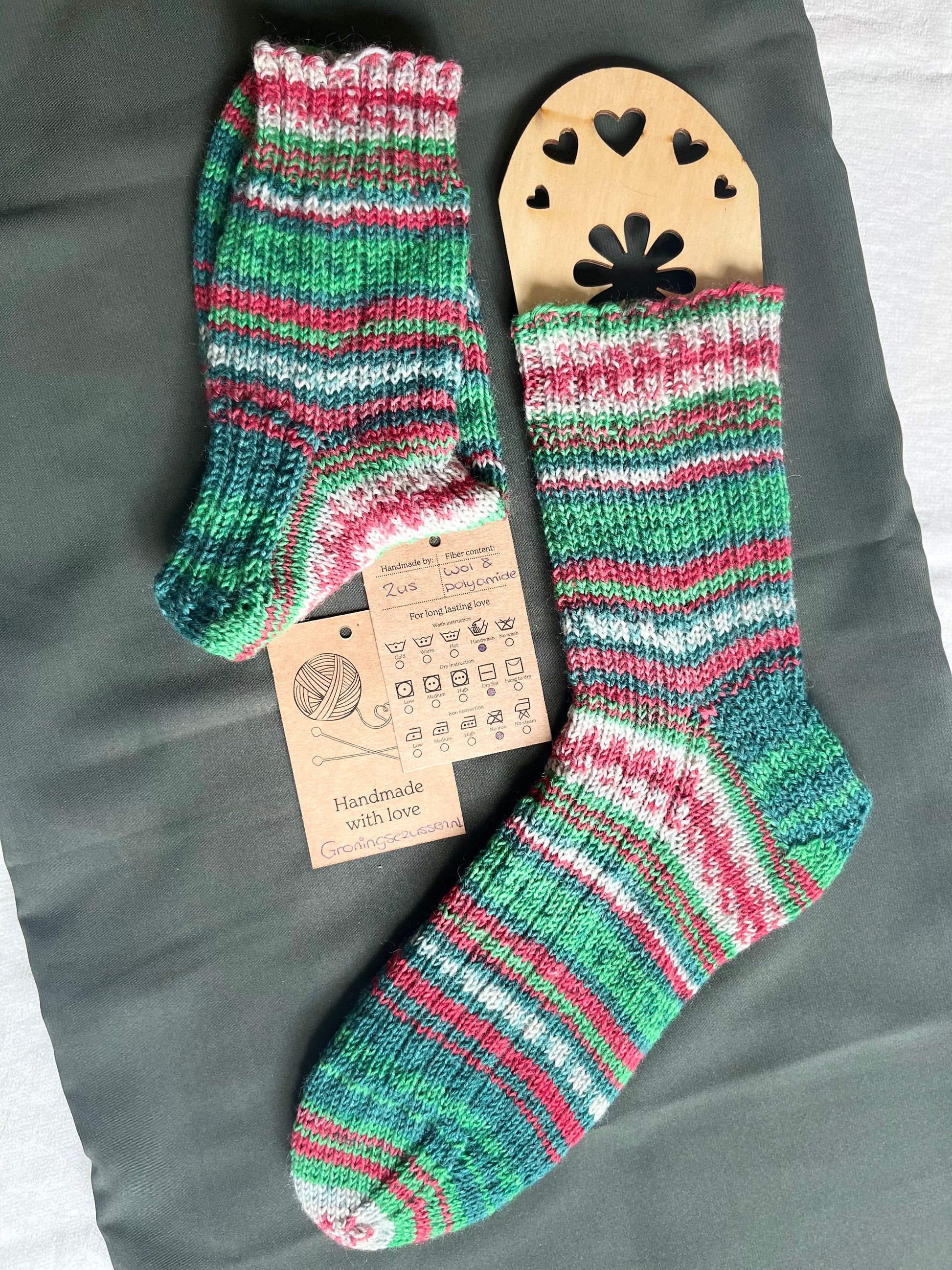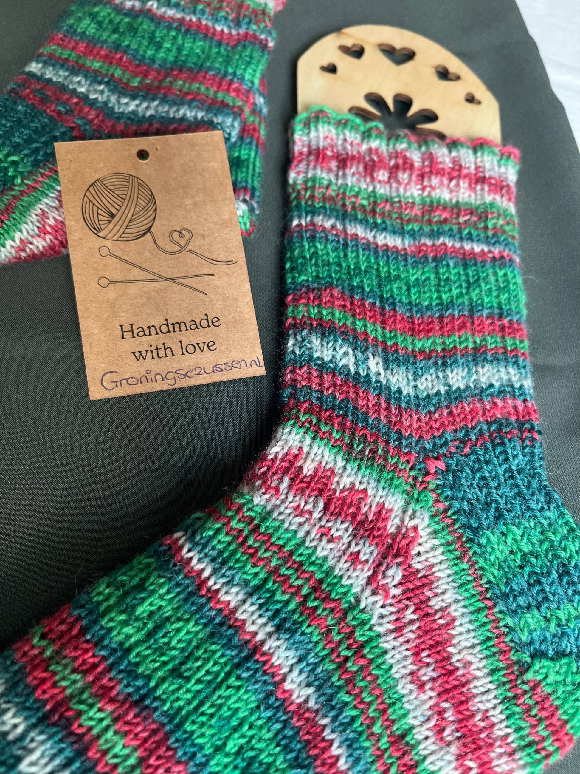 Handgemaakte, unieke sok van zachte wol met een vleugje polyamide voor extra stevigheid en flexibiliteit. Comfortabel, warm en duurzaam.
