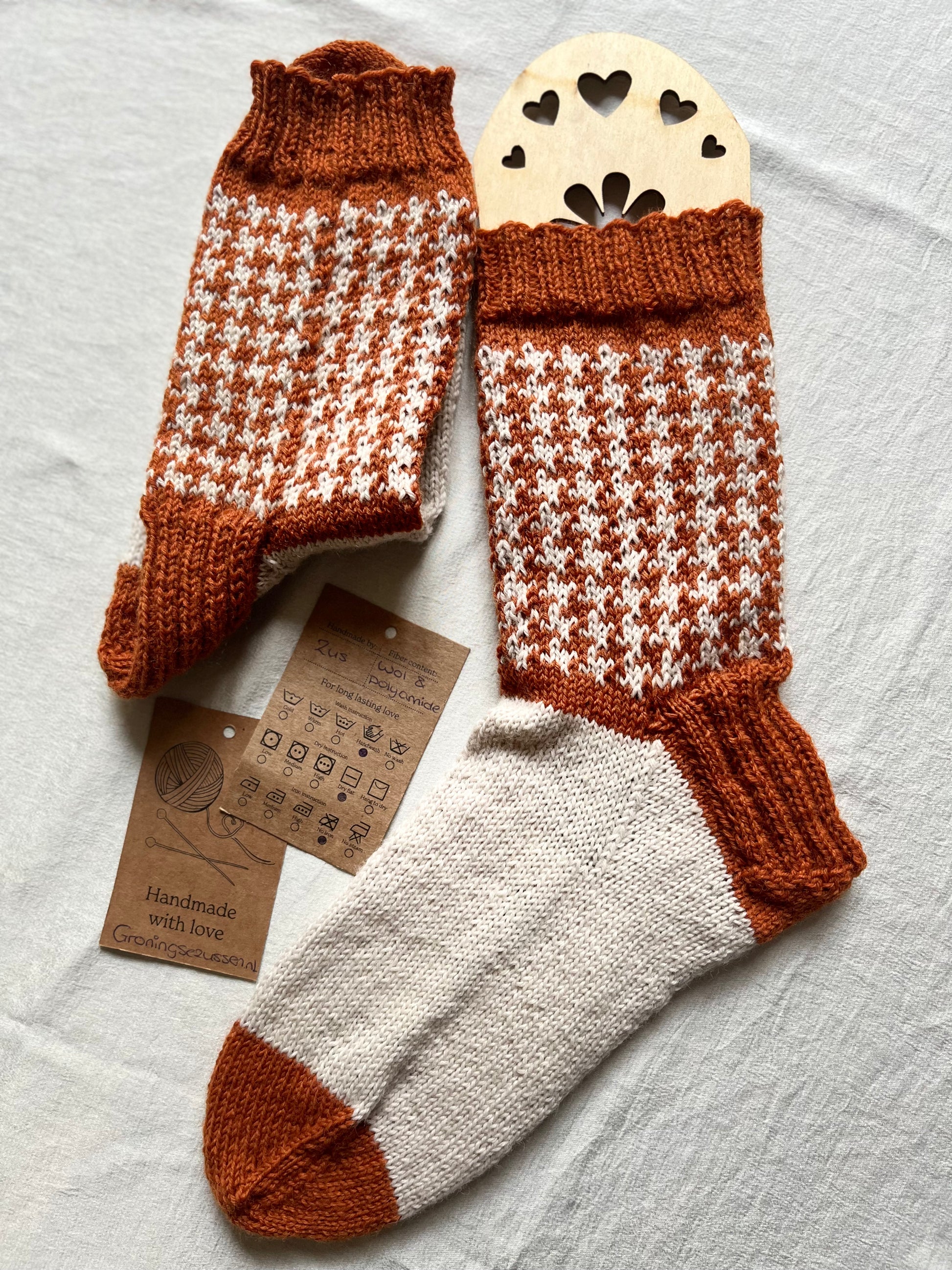 Handgemaakte, unieke sok van zachte wol met een vleugje polyamide voor extra stevigheid en flexibiliteit. Comfortabel, warm en duurzaam.