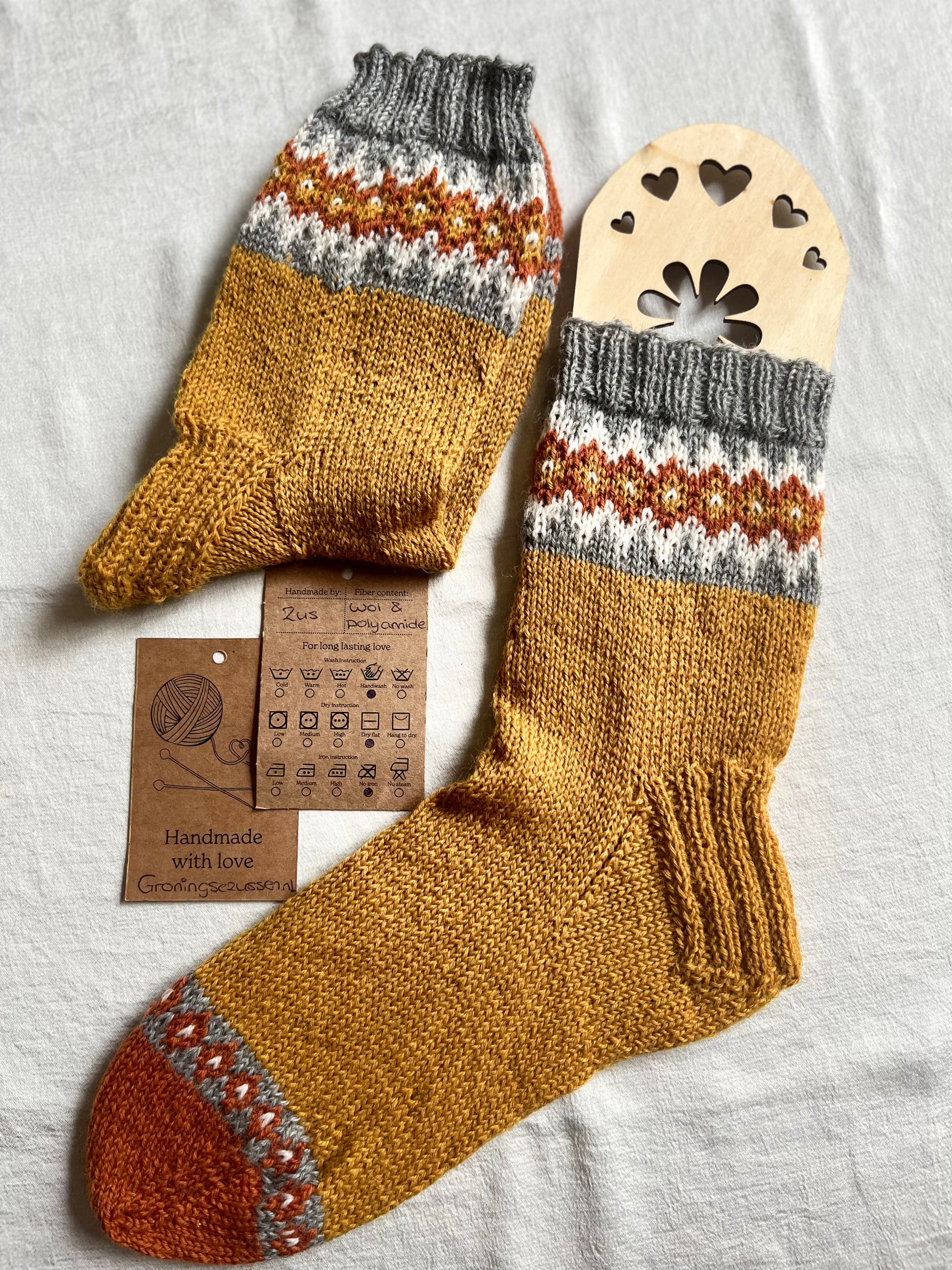 Handgemaakte, unieke sok van zachte wol met een vleugje polyamide voor extra stevigheid en flexibiliteit. Comfortabel, warm en duurzaam.