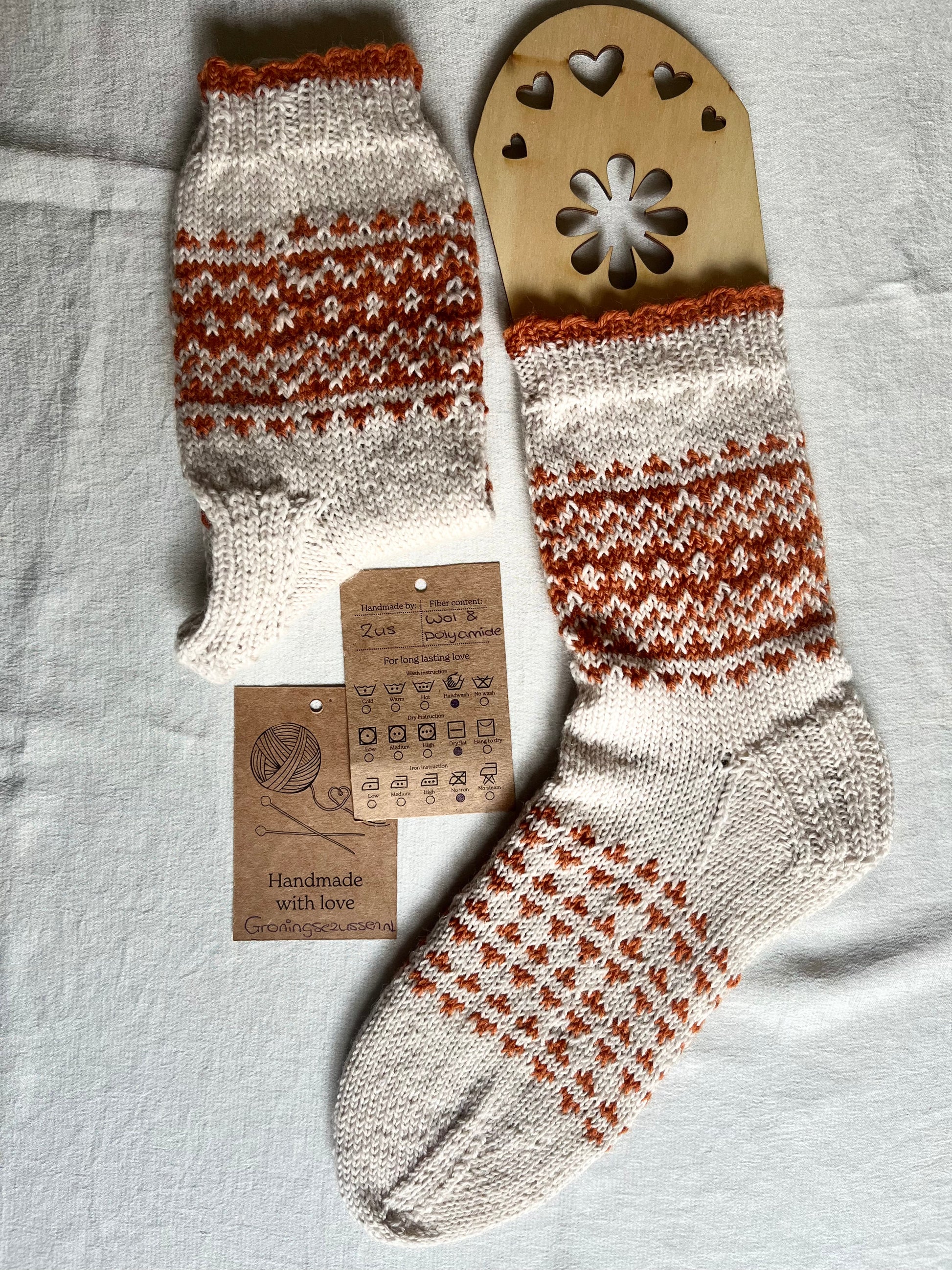 Handgemaakte, unieke sok van zachte wol met een vleugje polyamide voor extra stevigheid en flexibiliteit. Comfortabel, warm en duurzaam.