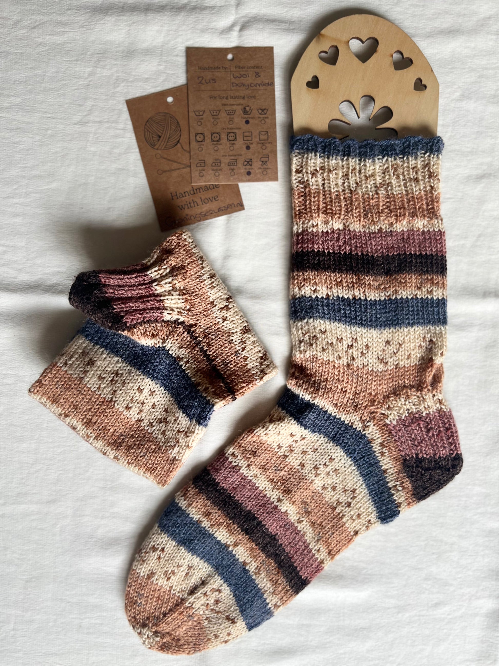 Handgemaakte, unieke sok van zachte wol met een vleugje polyamide voor extra stevigheid en flexibiliteit. Comfortabel, warm en duurzaam.