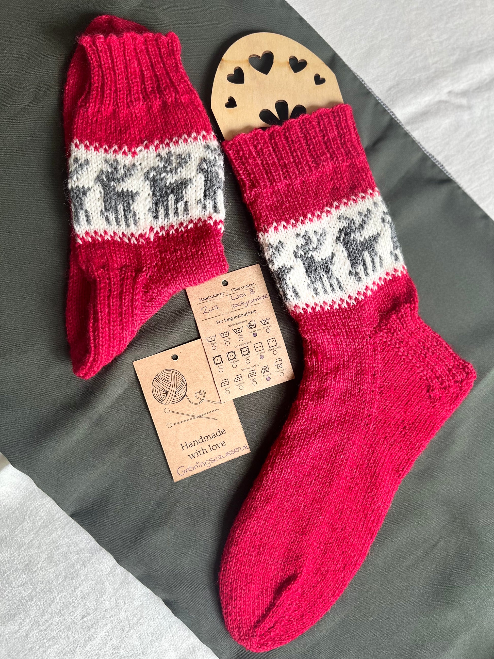 Handgemaakte, unieke sok van zachte wol met een vleugje polyamide voor extra stevigheid en flexibiliteit. Comfortabel, warm en duurzaam.