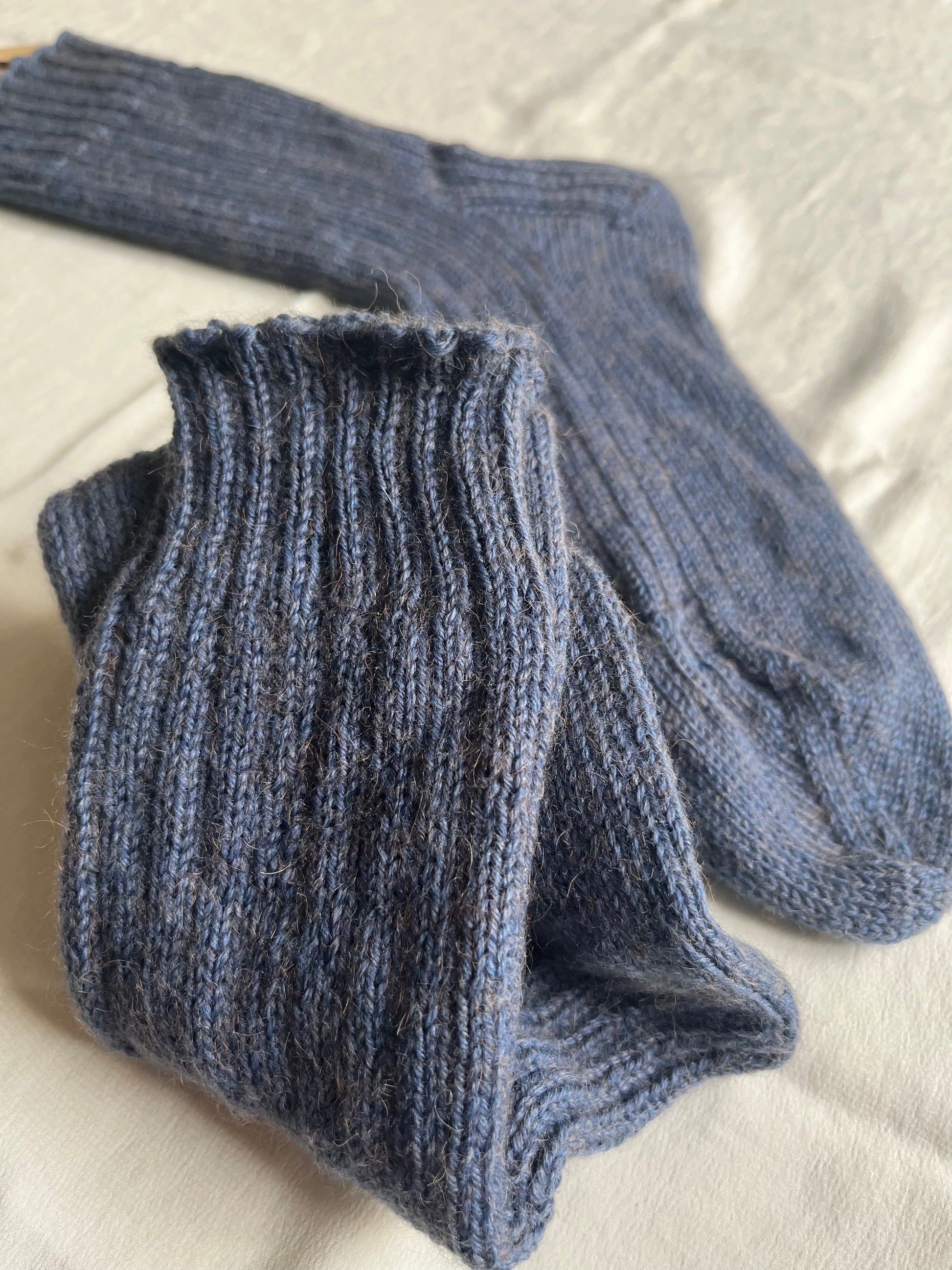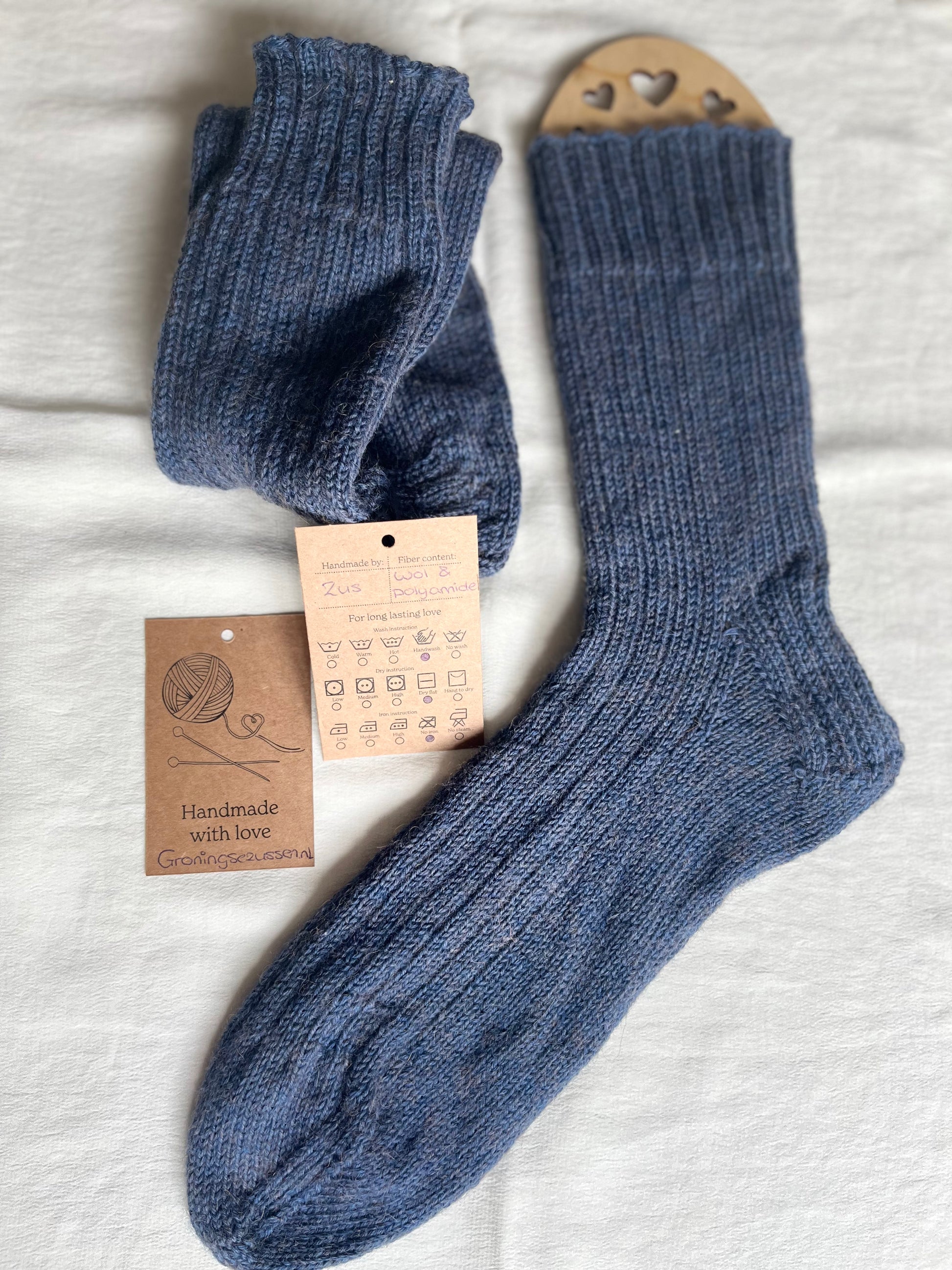 Handgemaakte, unieke sok van zachte wol met een vleugje polyamide voor extra stevigheid en flexibiliteit. Comfortabel, warm en duurzaam.