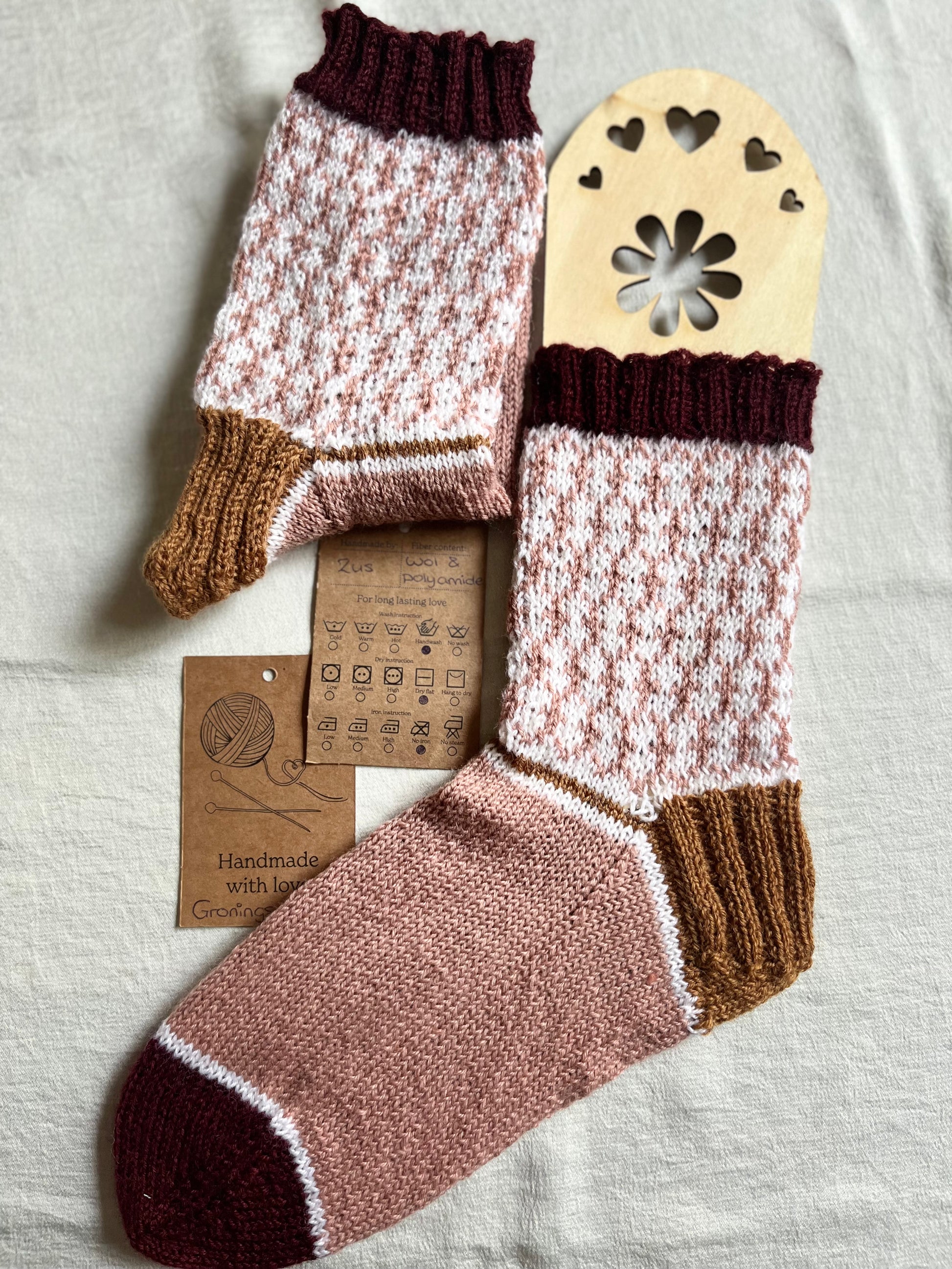 Handgemaakte, unieke sok van zachte wol met een vleugje polyamide voor extra stevigheid en flexibiliteit. Comfortabel, warm en duurzaam.