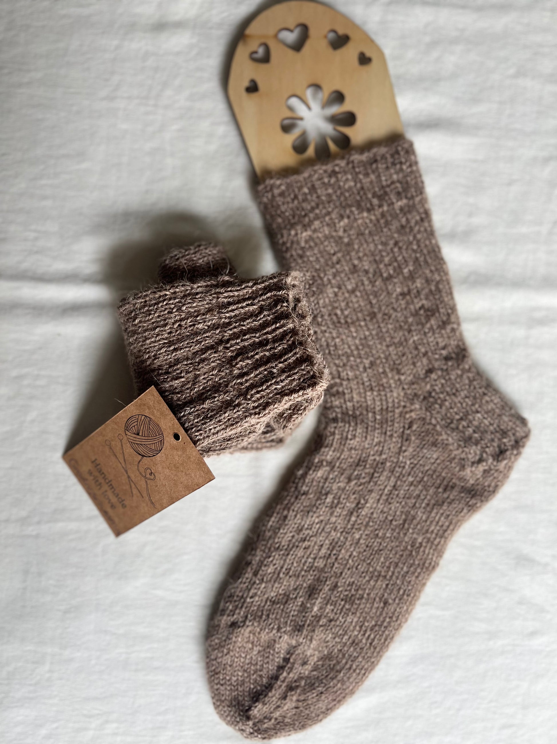 Handgemaakte, unieke sok van zachte wol met een vleugje polyamide voor extra stevigheid en flexibiliteit. Comfortabel, warm en duurzaam.