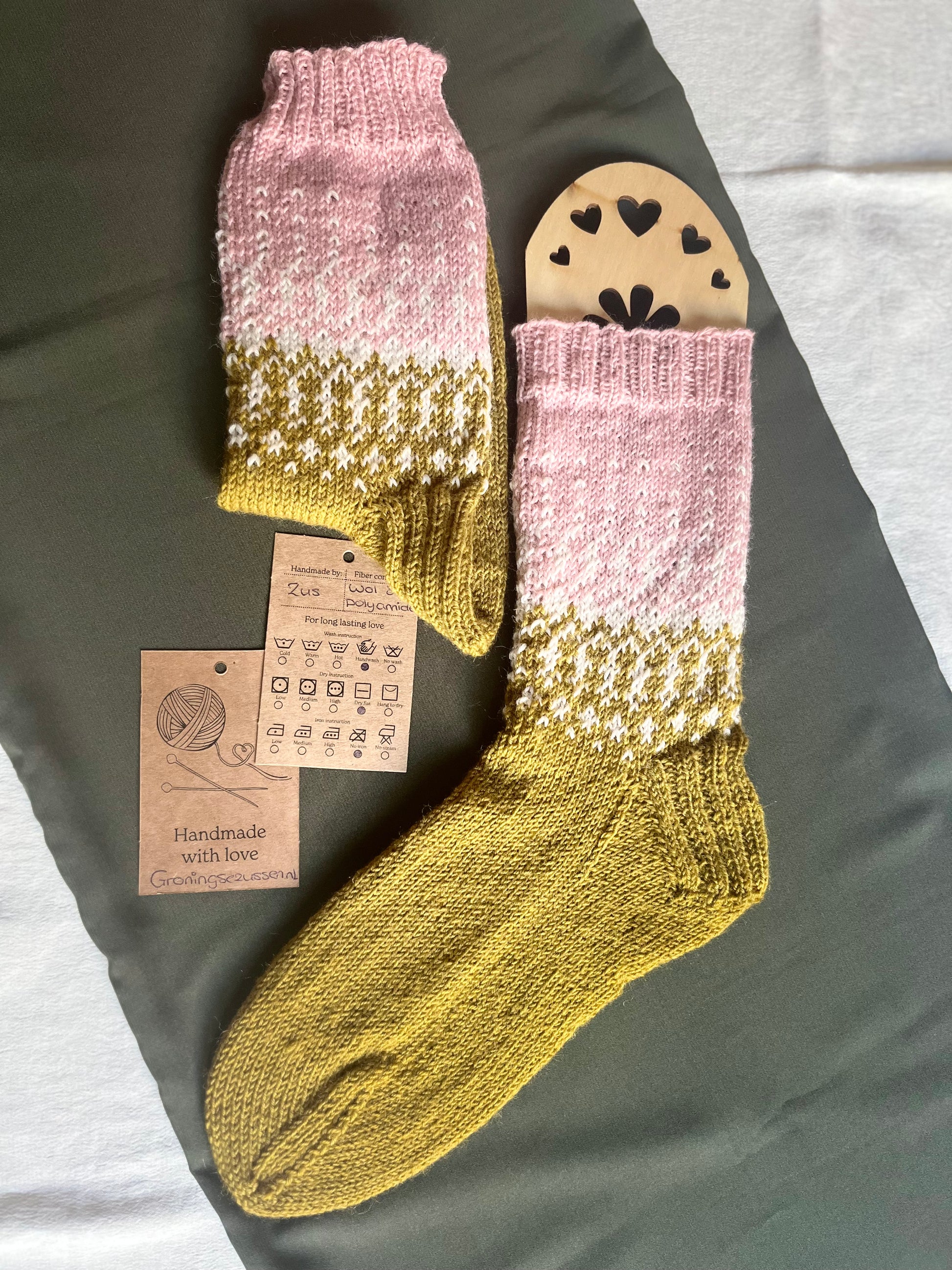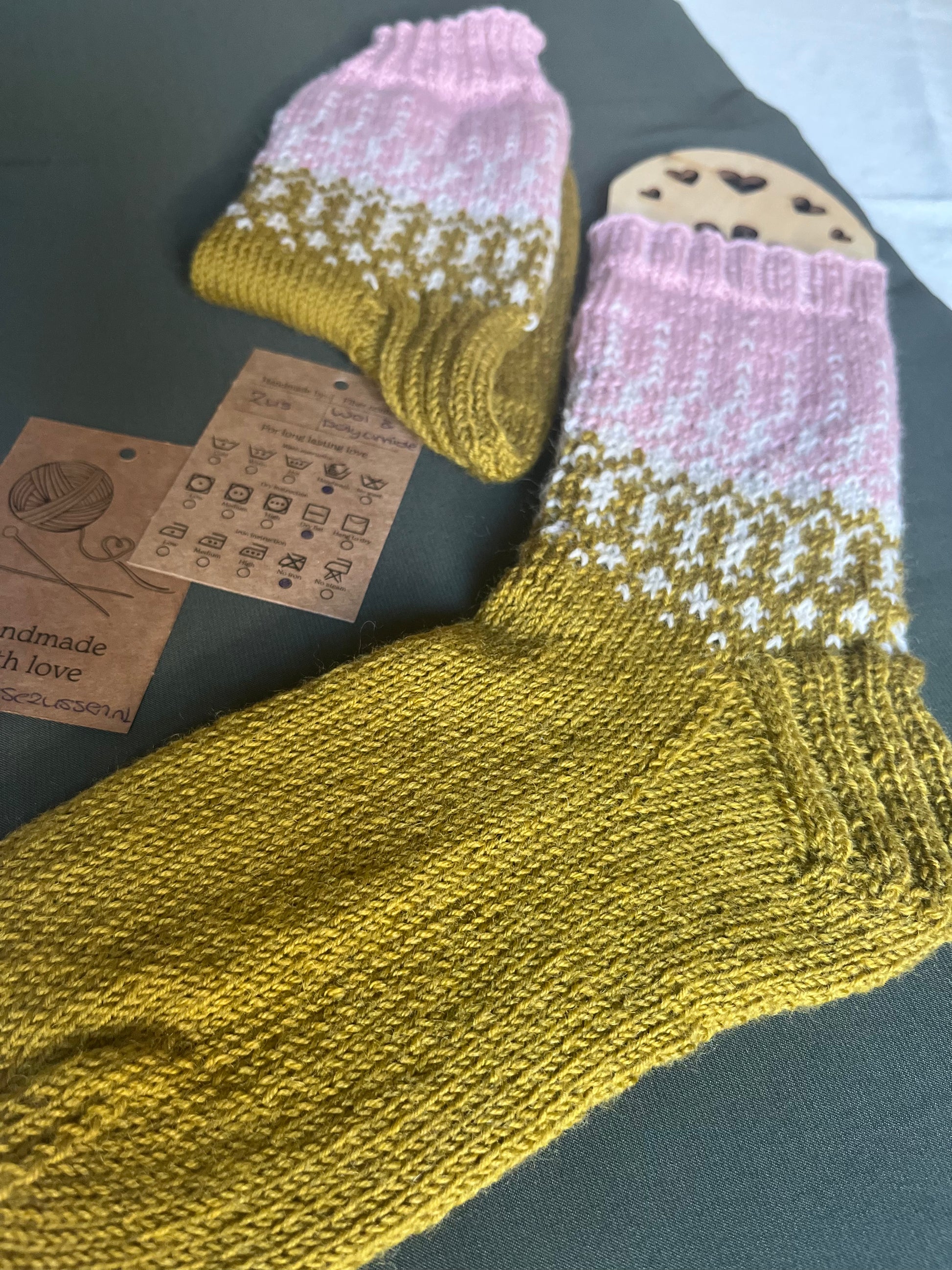 Handgemaakte, unieke sok van zachte wol met een vleugje polyamide voor extra stevigheid en flexibiliteit. Comfortabel, warm en duurzaam.